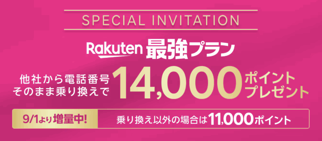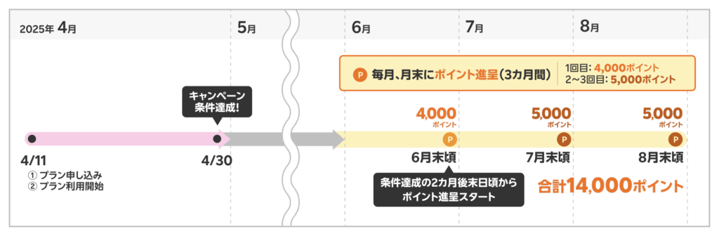 他社からの乗り換えは14,000ポイント。新規契約は11,000ポイント(2025年9月より増量中)。